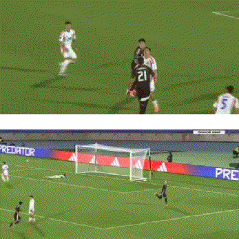 比赛开局,墨西哥队迅速进入状态。上半场第26分钟,年仅16岁的莫拉送出一记极具想象力的直塞球,19岁的希门尼斯前插至弧顶位置,不停球直接兜射球门左下角,皮球贴地入网,墨西哥队率先打破僵局。