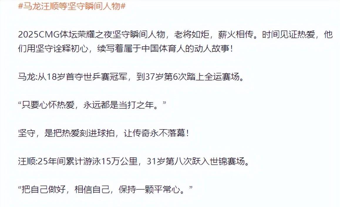 当马龙在2026年的开端,因为“坚守”而获得荣誉时,感到意外的夏露,或许也该得到一份敬意。这份奖项的背后,那块沉甸甸的奖牌里,未必没有她的一份功劳。